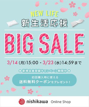 寝具メーカー西川株式会社は、対象商品が特別価格で購入できる「新生活応援ビッグセール」を実施中だ。期間は明日3月23日 14時59分まで。