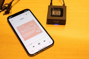 iPhoneとBluetoothトランスミッターをペアリングして再生を開始する。先程のA/Bスイッチのところにはボリューム調整ボタンもあり、サウナ室・休憩室双方で自分にとって心地よい音量に調整する(個別に設定はできない)。音楽を再生したら、サウナでの「瞑想モード」に突入。