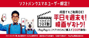 PayPayでは、同じくソフトバンクのスマホユーザーを対象に、抽選で決済金額の最大全額のPayPayポイントが付与される「TOHOシネマズミニアプリで当たる!ペイペイジャンボ」を実施。