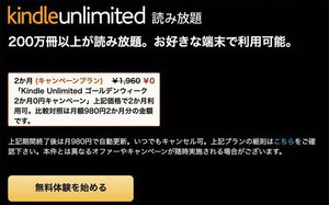 表示されたら対象!「Kindle Unlimited」が2ヶ月0円。200万冊が読み放題、GW限定