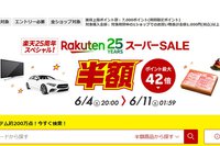 楽天スーパーセールに合わせたキャンペーンで、実施期間は6月11日9時59分まで。ロジクールブランドの各種PCアクセサリーのほか、JaybirdやUltimate Earsといった同社取り扱いブランドの製品も対象になっている。