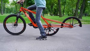 かくして、見た目にはかなり奇抜な「1+0.5×2=2輪」のヘンテコな自転車ができあがったわけだが、交互に設置する後ろの0.5×2の車輪がうまく機能しており、ガタついたり乗りにくそうな雰囲気はない。ただ、ホイールベースが一定間隔で長くなったり短くなったりするので、転回中はもしかするとその違和感があるかもしれない。
