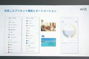 同社でWiZ事業開発マネージャーを務める岩下僚氏は、「外付けのセンサーなどが必要ないため、照明とは別に何かを買い足したり、センサーの電池を交換したりといった手間が必要ない」とWiZのメリットに言及。「例えば離れて暮らす家族の家の照明をWiZにして、自分の端末のアプリを見守り機能的に使ったりといったことも可能だ。また、寝返りの回数をカウントして睡眠のモニタリングに活用したりもできる」と、スマート照明がユーザーの生活の質向上に貢献できることをアピールした。