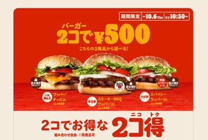 (株)ビーケージャパンホールディングスは、人気商品「ワッパーセット」を1つ購入するともう一つが無料になるキャンペーンを本日から開始した。期間は10月17日まで。