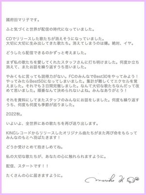 國府田マリ子のコメントも公開されており、今回のサブスク解禁は何年もかけて実現に至ったとのこと。また公式ブログでは、キャラソンやKONAMI時代の楽曲なども配信させたいと意欲を見せている。