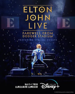ウォルト・ディズニー・ジャパンは、動画配信サービス「Disney+」にて、エルトン・ジョンの北米最後のコンサート「エルトン・ジョン・ライヴ:Farewell From Dodger Stadium」を独占生配信することを発表した。