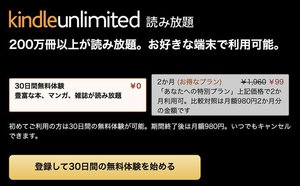 200万冊以上が読み放題!「Kindle Unlimited」が2ヶ月99円!特別プランをオファー中