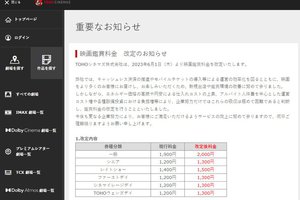 TOHOシネマズ、映画鑑賞料金を一律100円値上げで一般料金は2,000円。6/1から