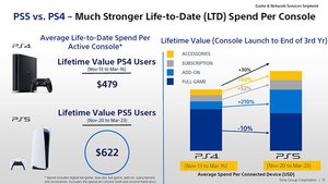 また、PS5のユーザーはPS4のユーザーよりもゲームのプレイ頻度が高く、PS StoreやPS Plusといった追加サービスの利用割合も高いと紹介。追加コンテンツの購入や周辺機器購入なども含めて、従来のプレステユーザーよりも積極的に金銭的な支出を生み出しており、いわゆるエンゲージメントが高くなっていると説明した。