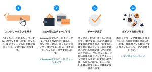 本キャンペーンは、プライム会員であれば参加できる。期間は7月19日まで。事前にキャンペーンページからエントリーが必要だ。またチャージ金額は5,000円以上である必要がある。支払い方法については、コンビニ・ATM・ネットバンキング・ 電子マネー・クレジットカード支払い、いずれでも有効だ。