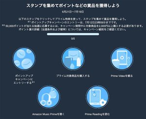 ここまでのキャンペーンは、Amazonプライムデーで何かしらお金を使うことが前提のものだったが、実は買い物をしないで賞品がもらえるかもしれないキャンペーンも開催されている。それがAmazonプライム会員が参加できる「スタンプラリー」キャンペーンだ。