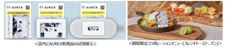 ワイヤレスカセットプレーヤー「AX-W10/AX-W10C」(Walky)など、AUREXブランドの新製品を体験できるようにするほか、カフェのメニューにもコラボレーションメニューを用意。また、店内は、イラストレーター・pomodorosa(ポモドローサ)氏が描き下ろしたオリジナルキャラクターの世界観で彩られるという。