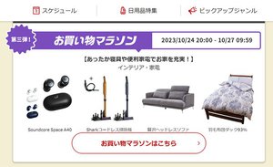 楽天市場は、ポイントが最大44.5倍獲得できるセール企画「お買い物マラソン」を本日10月24日(火)20時から開始する。キャンペーン期間は10月27日(金)9時59分まで。