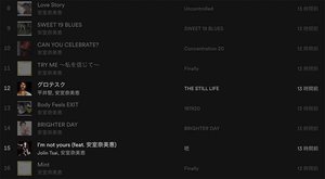 現在配信を確認できるのは、「feat. 安室奈美恵」となっていたり、別アーティストとコラボした楽曲のみ。また単独名義の楽曲であっても配信されている楽曲(「Come」)もあるようだ。
