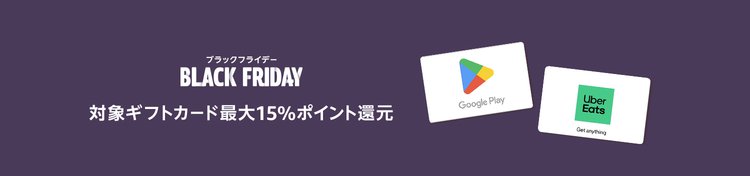 Amazonブラックフライデー、Uber・Googleギフト購入で最大15%のポイント還元キャンペーン