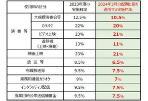 日本音楽著作権協会(JASRAC)は、2024年3月分配期における管理手数料実施料率の一部を引き下げ、アーティストへの支払い額を増額すると発表した。
