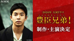 NHKは、2026年の大河ドラマについて、豊臣秀長を主人公にした『豊臣兄弟!』とし、主演・仲野太賀、脚本・八津弘幸で制作すると発表した。