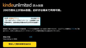 本日まで!200万冊以上読み放題、Amazon「Kindle Unlimited」2ヶ月0円キャンペーン