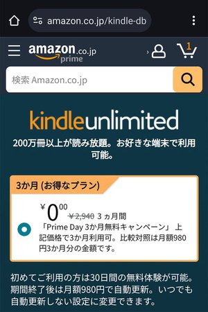 なお、キャンペーンは既存のKindle Unlimited会員には適応されないほか、一人一回のみの限定プランとなる。