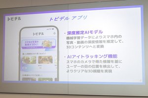 アプリでは、スマホ内のコンテンツを3D変換するにあたって2つのAI機能を採用している。1つめは「深度推定AIモデル」で、機械学習データによってスマホ内の写真や動画の深度情報を推定し、コンテンツを3Dに変換するというもの。2つめは「AIアイトラッキング機能」で、スマホのカメラで得た情報をもとにユーザーの目の位置を検出するというもの。これによってユーザーごとに最適化された3D視聴を実現すると説明している。