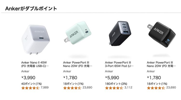Amazon、今週末は「ダブルポイント祭り」。Anker製品などポイント2倍還元