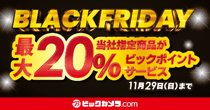 ビックカメラグループは、年に一度の大型セール「ビックカメラ ブラックフライデー」を11月16日(土)10時より開始。本セールに先駆けてビックカメラ.comでは、その前日の11月15日(金)22時より先行販売を開始する。期間は11月29日(金)まで。