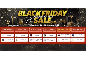 ジョーシンwebショップは、テレビやレコーダー、ワイヤレススピーカーやサウンドバーといったオーディオ・ビジュアル機器から、生活/調理家電、食品や日用品など、さまざまなアイテムを対象にした「ブラックフライデーセール」を実施する。第一弾は11月18日(月)9時59分まで。