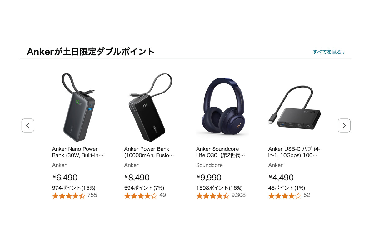 Amazon、「ダブルポイント祭り」を今週末に開催。Ankerヘッドホンなどがポイント2倍に