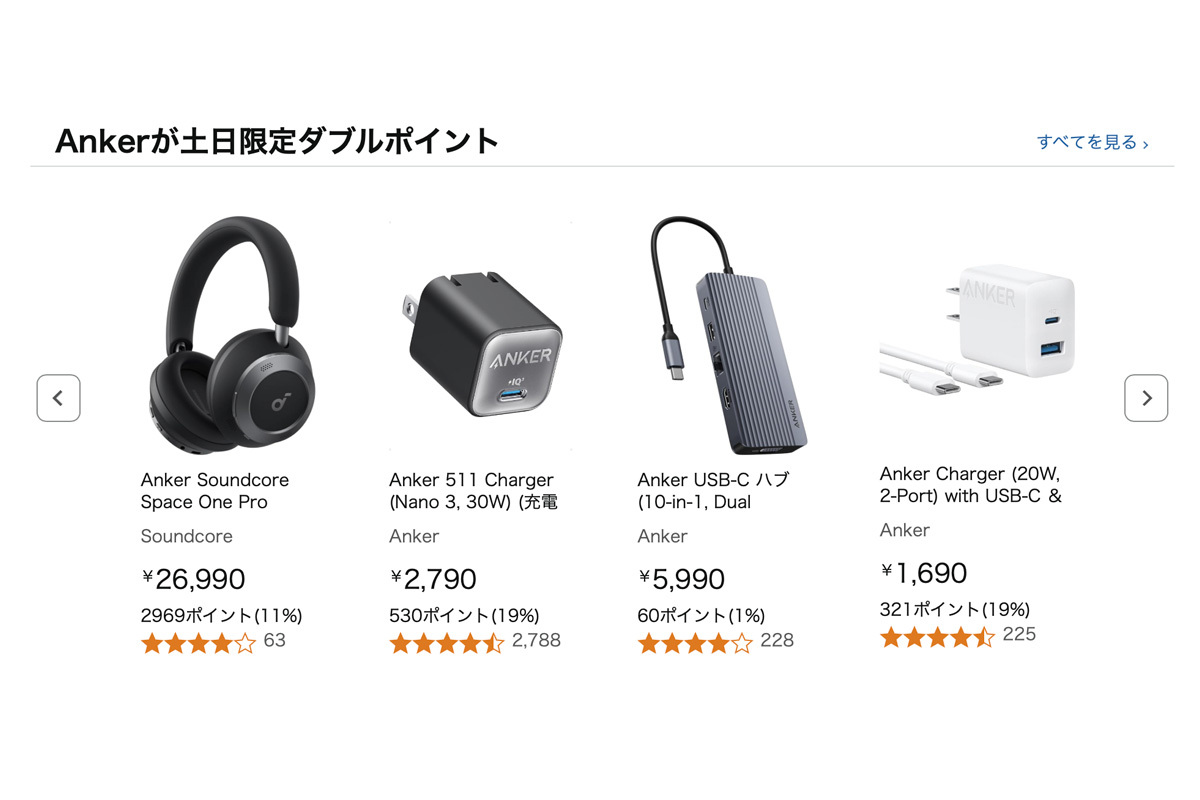 「Amazon ダブルポイント祭り」が今週末に開催。ANCイヤホンから日用品までポイント2倍に