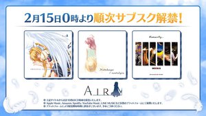 PCゲーム『AIR』関連楽曲が、2月15日より順次各音楽ストリーミングサービスにて配信開始されている。