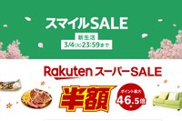 楽天スーパーSALEは3月11日1時59分(10日深夜25時59分)までの開催。明日以降の超目玉アイテム情報も事前公開されているほか、割引クーポンの配布なども行われている。詳細は公式ページで確認できる。