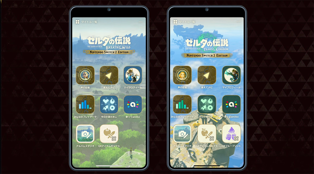 『ゼルダの伝説』2タイトルについては、iOS/ Androidにて配信予定のアプリ「Nintendo Switch App」を用いた連携機能も新たに追加。アプリ内で無料ダウンロードできる「ZELDA NOTES」でのリアルタイムプレーヤーアシストや、「ウルトラハンド」で作った設計図をQRコードに変換し、他プレーヤーに共有できる「QRブループリント」などを使用できる。