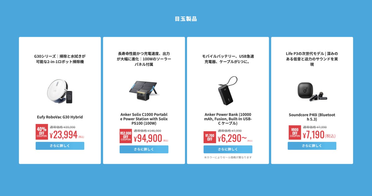 Anker、楽天で最大40%オフセール中!強力ANCのイヤホン/ヘッドホン、ロボット掃除機などがお得