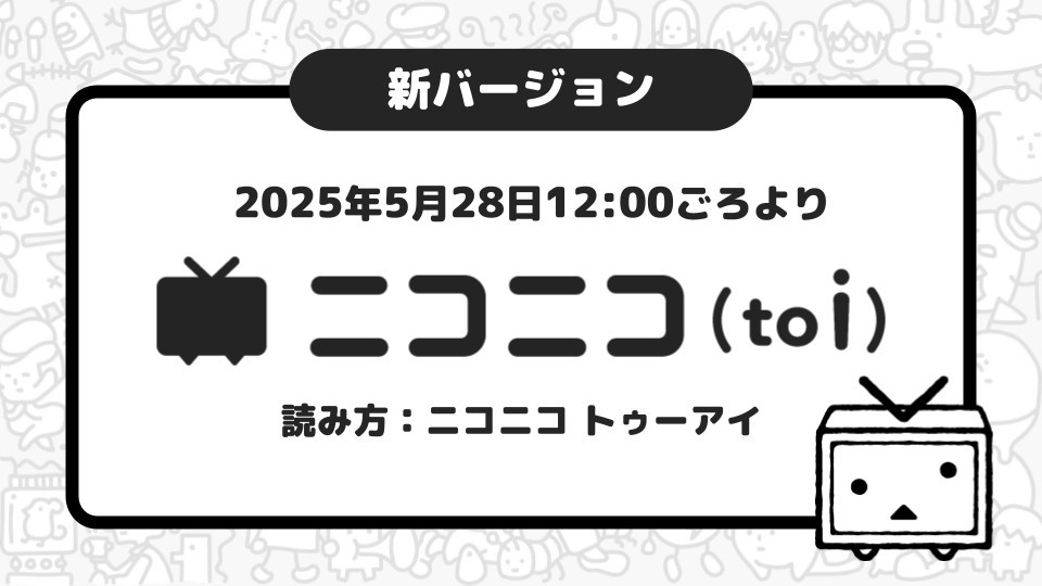 ドワンゴは、同社が運営する「ニコニコ」サービスを、本日5月28日(水) 12時より新バージョン「ニコニコ(to i)」(読み:ニコニコ トゥーアイ)へとアップデート。あわせて、2025年度のサービスロードマップを公表した。