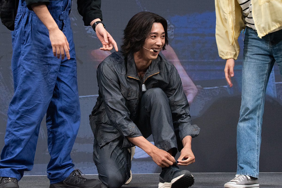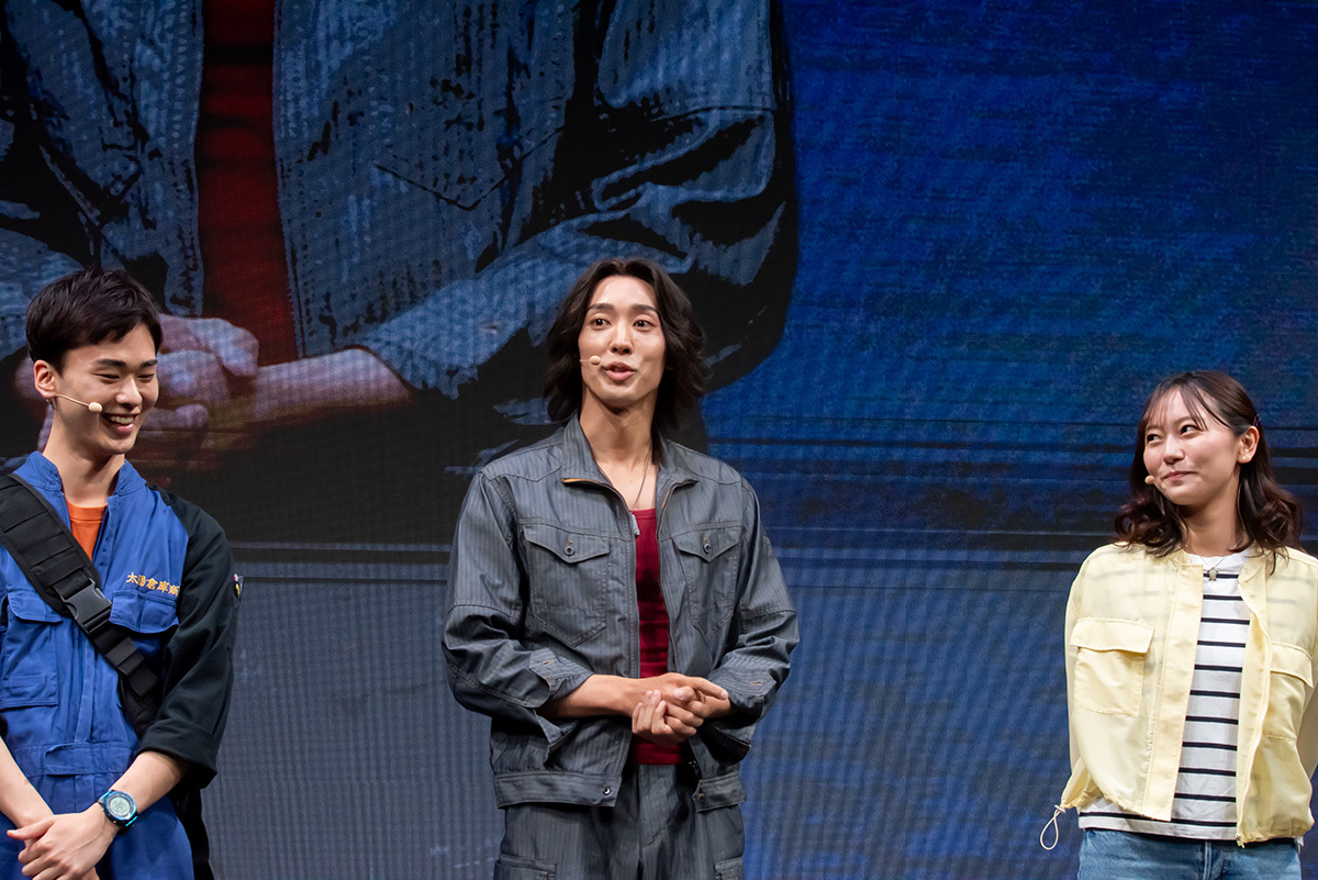ASHによるパフォーマンス後、MCの呼び込み本作のメインキャストが集結。で主人公「オオキダ ソラト」を演じる近藤頌利(こんどうしょうり)、宇宙人であるソラトと出会い、地球人としてバディを組む「ホシミ コウセイ」役の吉田晴登(よしだはると)、ある怪獣事件の現場で、ソラト・コウセイの2人と出会いを果たし、行動をともにする本作のヒロイン「イチドウ アユム」役の工藤綾乃(くどうあやの)らが放送を前にした今の想いを語った。
