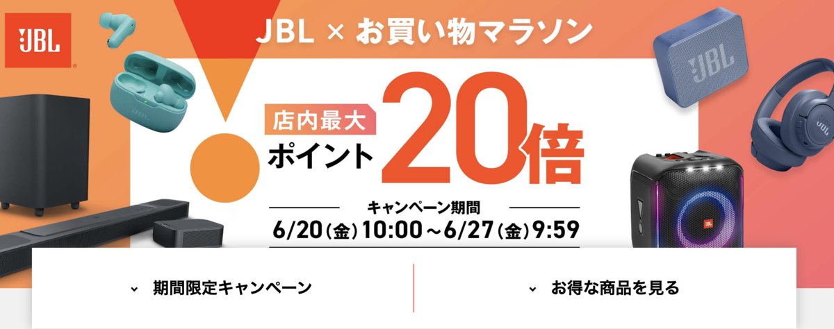 JBL、楽天で最大20倍ポイントバック。イヤホン/ヘッドホンなどがお得に買える!