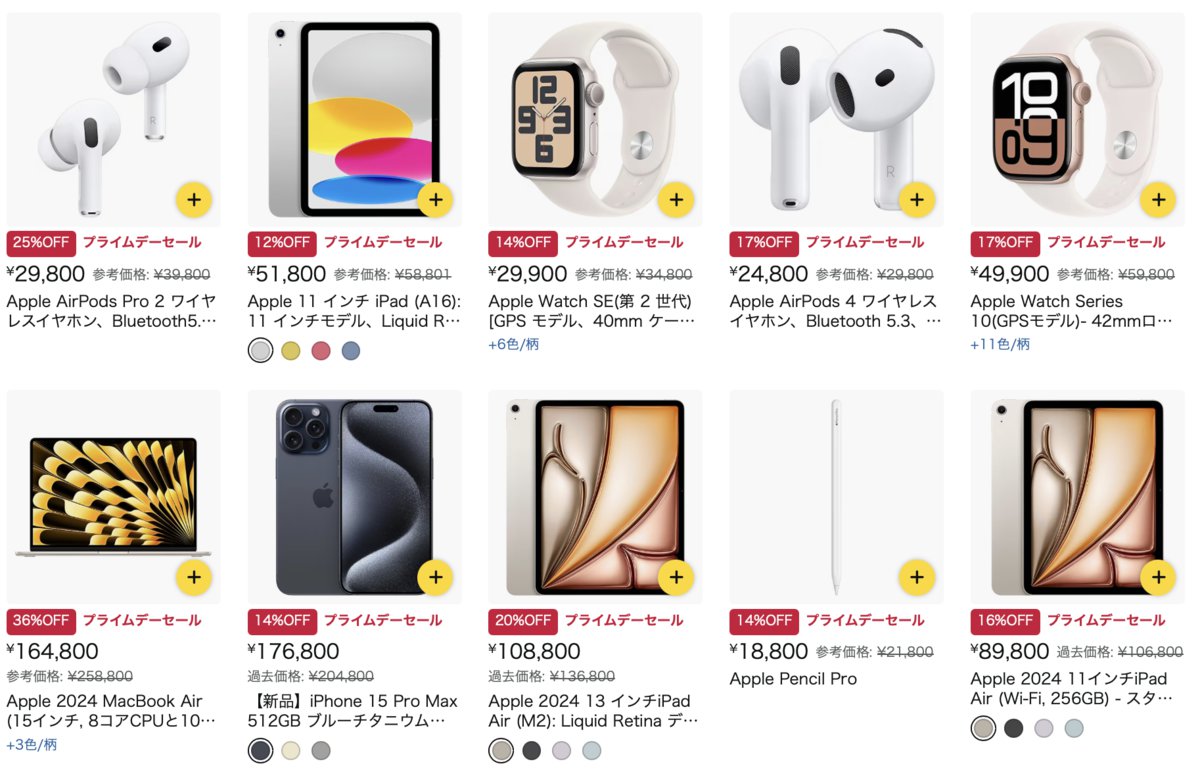 また、根強い人気を誇るアップル製品も見逃せない。まずオーディオ機器では、完全ワイヤレスイヤホン「AirPods Pro2」が通常より25%オフの29,800円、「AirPods 4」も17%オフの24,800円で販売中。iPadについても、11インチのA16チップ搭載モデルが12%オフの51,800円、さらにMacBookシリーズは最大36%オフ、Apple Watchシリーズも最大17%オフでラインナップ。ほかにも、有線イヤホン「Apple Pods」や、「Apple Pencil Pro」などの周辺機器もお買い得価格で登場しているのでぜひお見逃しなく。