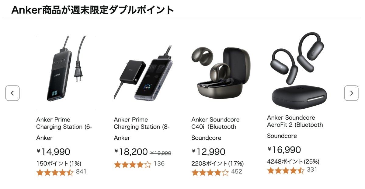 Anker製品も幅広くダブルポイントに