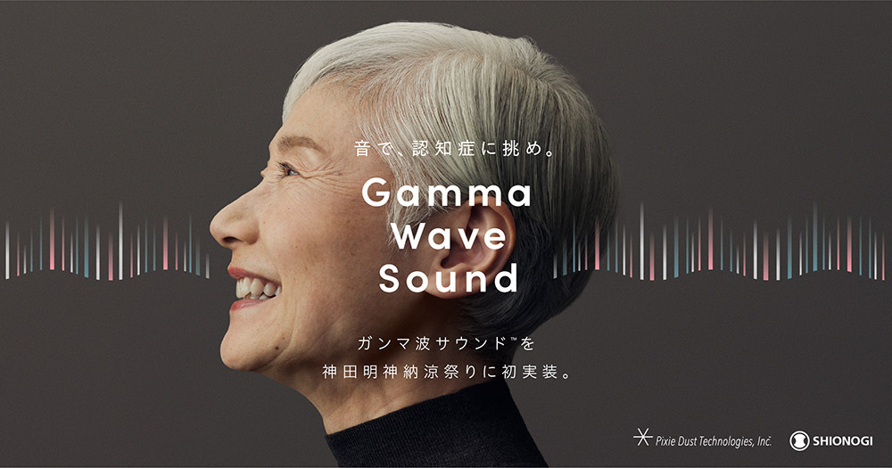 ガンマ波サウンドとは、ピクシーダストテクノロジーズと塩野義製薬が共同開発した “聴くだけで脳を鍛える” 音を生成する技術。テレビやラジオなど普遍的な音声の一部をリアルタイム変調し、記憶力や集中力といった脳機能と深く関わるとされる40Hz周期の周波数を生成。この変調を施した音を聴いているだけで脳を刺激し、認知機能をケアできるとしている。
