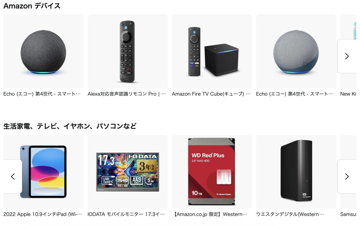 特設ページでは、上述の通りセール対象製品が一部公開中。注目製品として、アップル「iPad 第10世代 10.9インチ」、 “Fire TVシリーズ” や “Echoシリーズ” をはじめとしたAmazonデバイス各種など紹介されている。そのほか、シャオミのスマートフォンやサムスンの外付けSSD、UGREENの電源タップといった家電類、MRヘッドセット「Meta Quest 3S」などがピックアップされている。