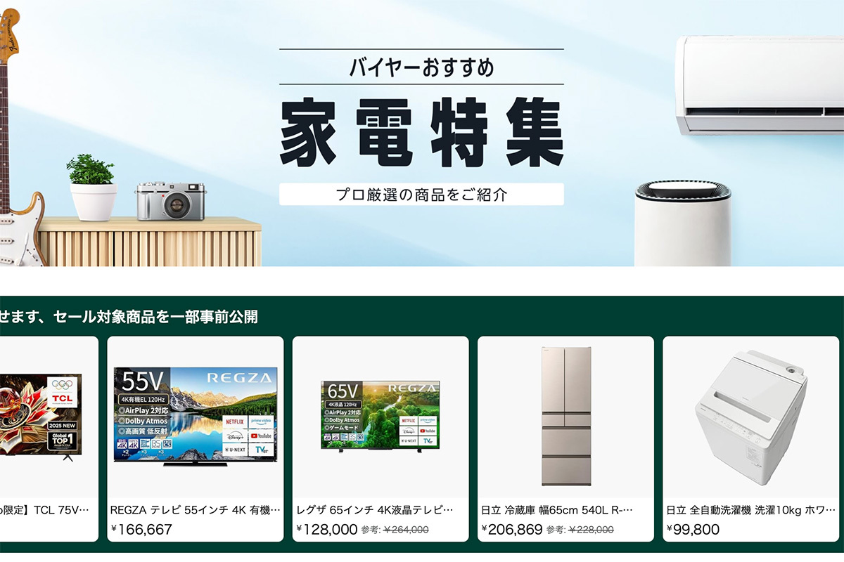 そのほか、「バイヤーおすすめ家電」としてアップル「iPad mini 第7世代 8.3 インチ」、JBLのワイヤレスイヤホン各種、ヤマハやデノンのサウンドバーなど、セール対象製品の特集も実施している。
