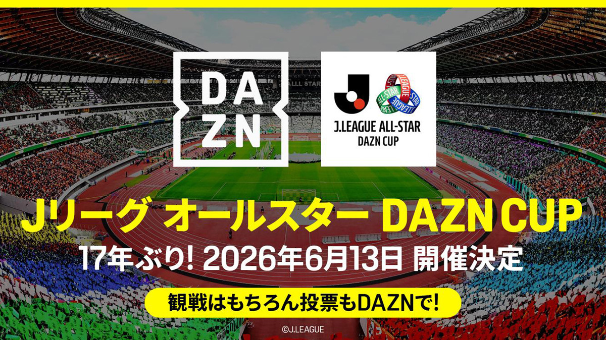 DAZNは、Jリーグのオールスター戦「Jリーグオールスター DAZNカップ」が2026年6月13日(土)に開催されることを発表した。また、DAZNがタイトルパートナーとして全試合のライブ配信も予定している。会場はMUFGスタジアム(国立競技場)。