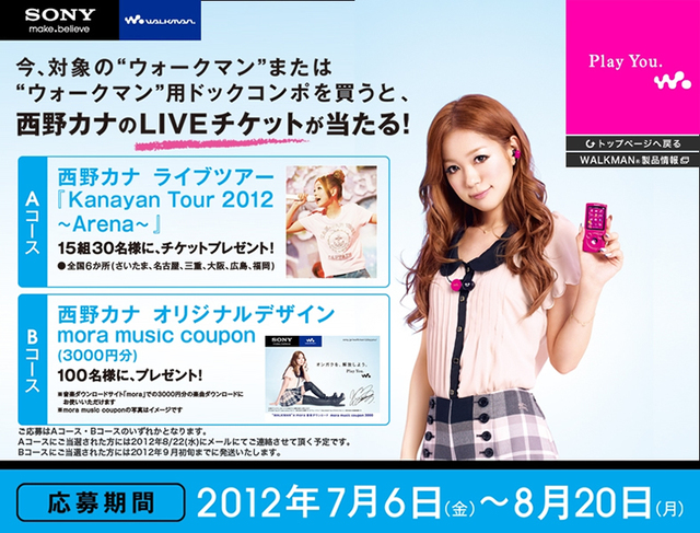 HOME > ニュース > ホビー&カルチャーニュース ドックコンポも対象 ソニー、“Walkman”購入で3000円分クーポンや西野カナのライブチケットが当たるキャンペーン ファイル・ウェブ編集部 2012年07月06日 この写真の記事へ 関連リンク 本件の詳細 ソニーストアの製品情報