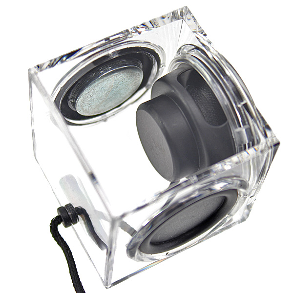 エバーグリーン、約4.5立方cmのアクリル製キューブ形スピーカー