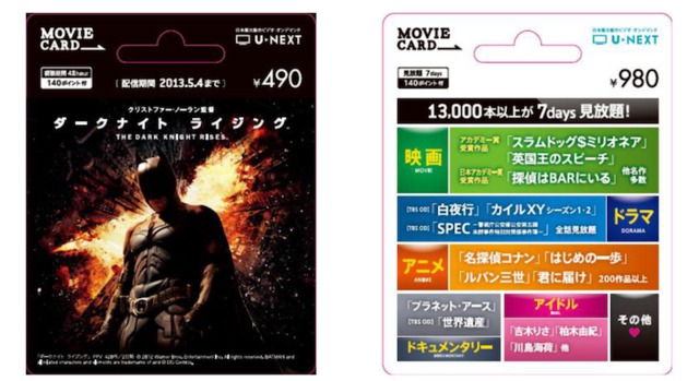 HOME > ニュース > ホビー&カルチャーニュース ローソン限定で販売開始 U-NEXT、配信動画をコンビニ決済できる「MOVIE CARD」「MUSIC CARD」 ファイル・ウェブ編集部 2012年12月05日 前の写真へ 次の写真へ 前の写真へ 次の写真へ この写真の記事へ 関連リンク 「MOVIE CARD」の詳細 「MUSIC CARD」の詳細