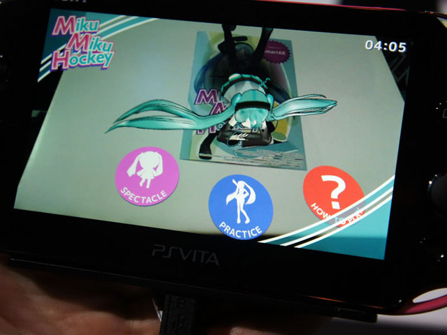「Miku Miku Hockey」。PS Vitaを動かせば別アングルから初音ミクの姿を確認できる