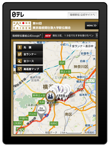HOME > ニュース > ホビー&カルチャーニュース 日テレ、「箱根駅伝速報WEBアプリ」提供 ー 記録速報などのチェックが可能 ファイル・ウェブ編集部 2013年12月26日 前の写真へ 前の写真へ この写真の記事へ 関連リンク 「箱根駅伝速報WEBアプリ」の詳細