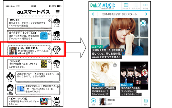 KDDI、音楽配信と連携したスマホ向けエンタメ情報配信サービス「DAILY MUSIC」