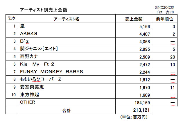 2013年のCD等売上は前年比1割減 − 年間売上トップは嵐
