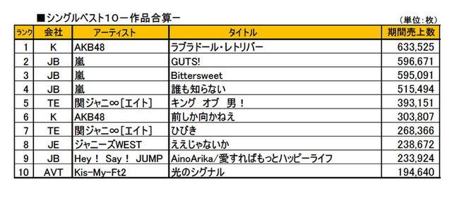 '14年上期CD売上、前年同期割れで1,000億円を切る − アーティストは嵐とAKBが首位争い